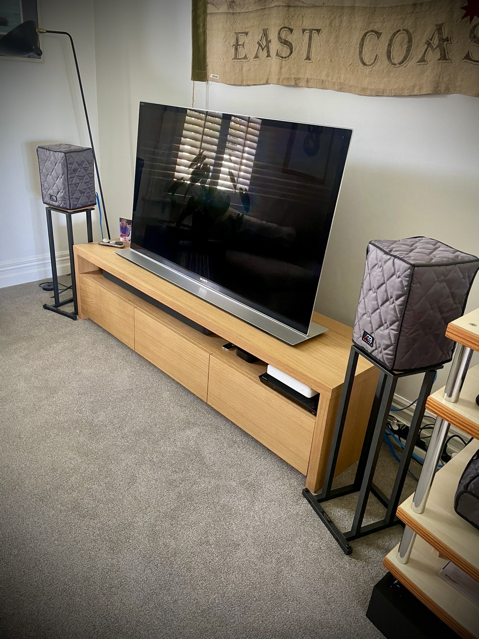 Q Acoustics 3000i / LP Crates / Hi-Fi stack